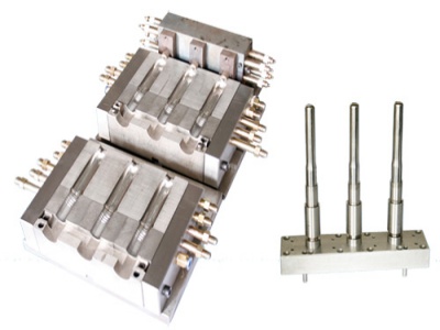 公司可為廣大用戶提供:吹塑成型機和注射成型機配套的“擠出”吹塑模、“擠出”吹瓶模、三工位“注--吹”模、PET瓶坯模、PET瓶坯模、熱流道瓶蓋模等,公司專注注吹模具設計方面技術,可為使用國外各種品牌(如美國的WHEATON、美國的JOMAR、意大利的UNILOY等)全自動三工位“注吹”成型機的吹瓶廠商提供模具配套,同時也可為國內(nèi)全自動三工位“注吹”成型機制造公司提供模具配套服務。